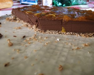 3) prendete la base dal frigo e versate il composto. Aspettate che sia completamente raffreddato prima di rimettere nel frigorifero, dove lascerete il tutto per almeno 5 ore;