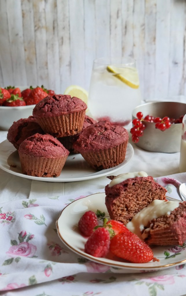 La mia versione dei red velvet muffin alla barbabietola è completamente