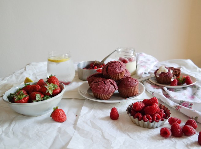 Per questo ho accompagnato i miei muffin con dei frutti rossi e un bel bicchiere di acqua, limone e ribes freschi.