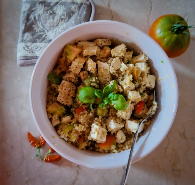 INSALATA DI QUINOA CON TOFU, OLIVE E POMODORO FRESCO