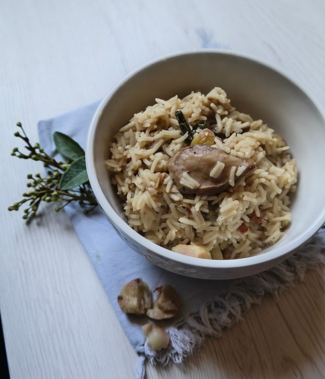 RISO BASMATI CON CASTAGNE, SALVIA E FUNGHI PORCINI