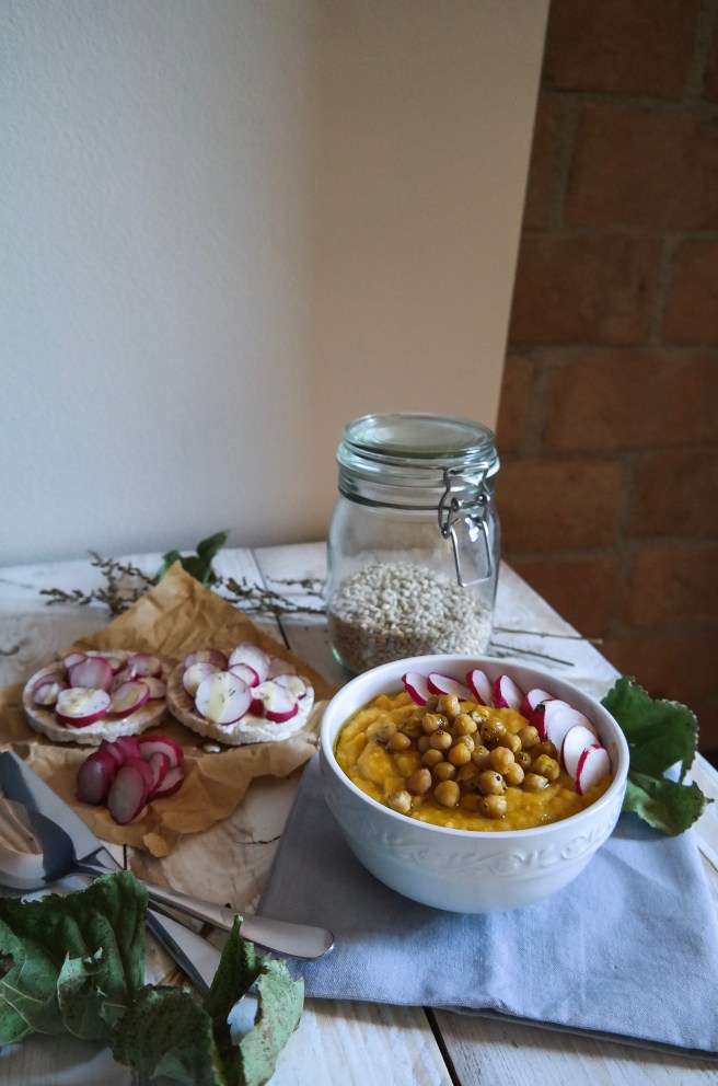 CREMA DI ZUCCA, CECI E RISO CON RAVANELLI