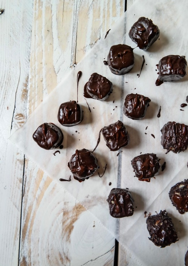 5 – melt the chocolate and cover each cubes with it;