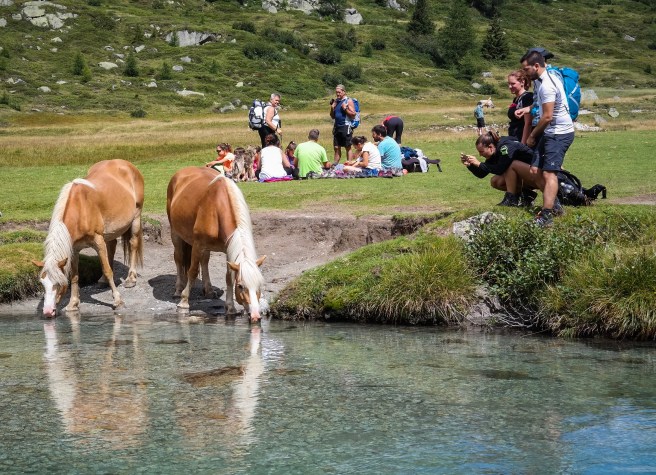 Da Daone abbiamo iniziato una camminata durata un paio di ore, ma davvero semplicissima anche per le famiglie. È presocché un sentiero tutto pianeggiante, che costeggia un torrente dalle acque cristalline, immerso dal verde dei pascoli dove si possono incontrare e acarezzare cavalli e mucche.