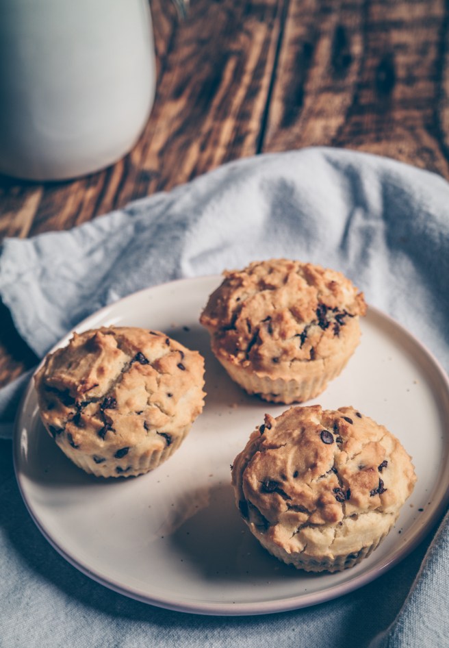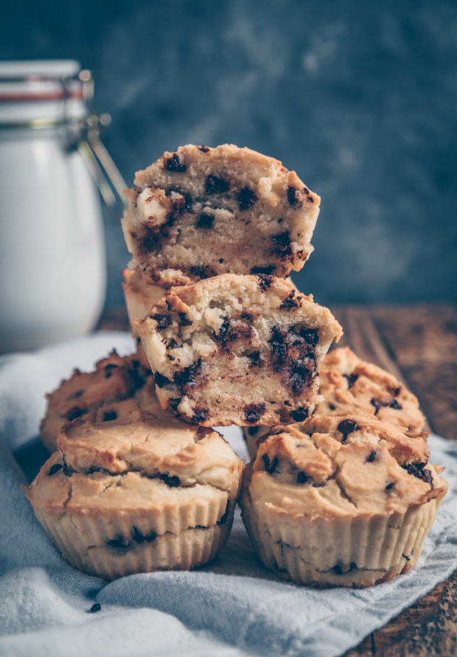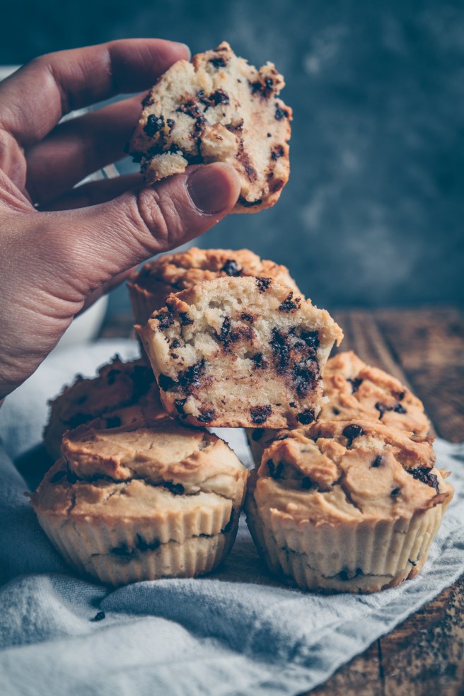 Soffici muffin con gocce di cioccolato (vegan, senza glutine e senza zucchero)