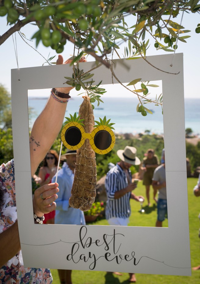 Il nostro “banchetto” è stato per lo più un finger food di poche portate servite tra un bagno in piscina e un tuffo in mare, trascinato durante tutto la giornata per poi chiudere con il taglio della torta verso le 20. Insieme al cuoco una signora del posto lo ha aiutato a preparare le portate e in cucina, quindi considerate almeno due persone per poter realizzare un finger food con 20/30 invitati, semplice, ma di effetto. Ovviamente, la cucina della casa in cui eravamo era attrezzata per poter essere usata in maniera professionale. In più l’agenzia e la prioprietà ci hanno supportato facendoci avere teglie e frigo extra per le nostre necessità, ecco perché in un secondo momento dovrete ovviamente avvisare del vero scopo della vostra festa.