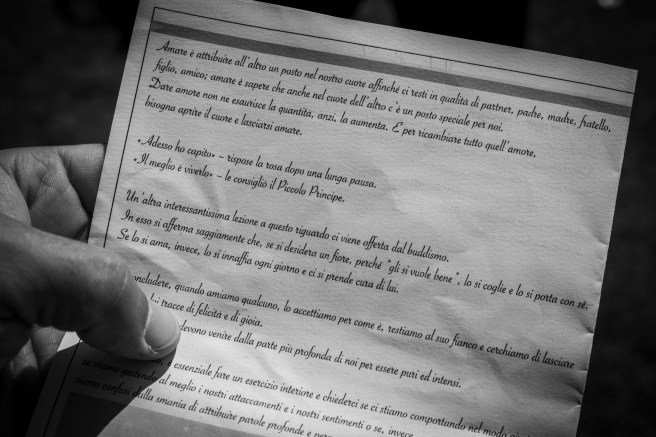 Nella sostanza si è trattato di una lettura delle nostre promesse, scritte di nostro polso senza che uno sapesse ciò che avesse scritto l’altro. Uno dei nostri amici ha svolto la funzione di celebrante e prima che iniziassimo noi, ha pensato di aprire il tutto con una lettura del Piccolo Principe, ma ovviamente ciò è a discrezione di chi avrà questo compito importante 😉