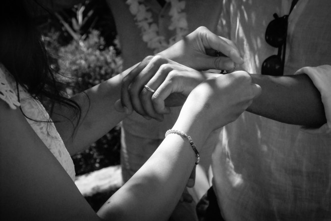 Essendo che ci eravamo già scambiati gli anelli in comune, i nostri testimoni ci hanno regalato dei braccialetti che ci siamo scambiati durante il rito.