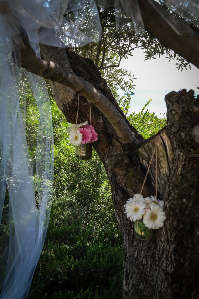 Acconciatura semplice e homemade grazie all’aiuto di mia cugina, la quale mi ha anche preparato un bouquet con dei fiori recisi che abbiamo comprato io e lei il giorno prima da un fiorista locale. Questa è stata forse l’impresa più difficile! La Sardegna è una location turistica e sì, ci sono dei fioristi! Ma non tutti hanno ciò che potrebbe fare al caso vostro. Fortunatamente, dopo aver girato un intero pomeriggio, siamo finiti in un vivaio che aveva qualche rimasuglio che facesse al caso nostro.