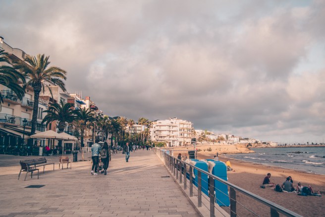 Sull’altro lato invece trovere invece una basilica più moderna dedicata a Sant Sebastià e che domina l’omonina spiaggetta. Questa è la parte che più mi piace di Sitges. La spiagga è piccolina e anche molto stretta a seconda della marea, ma la passeggiata è meno affollata e i locali sono proprio vicini alla spiaggia. Inoltre da qui si diramano i vicoli più stretti e storici del paesino.